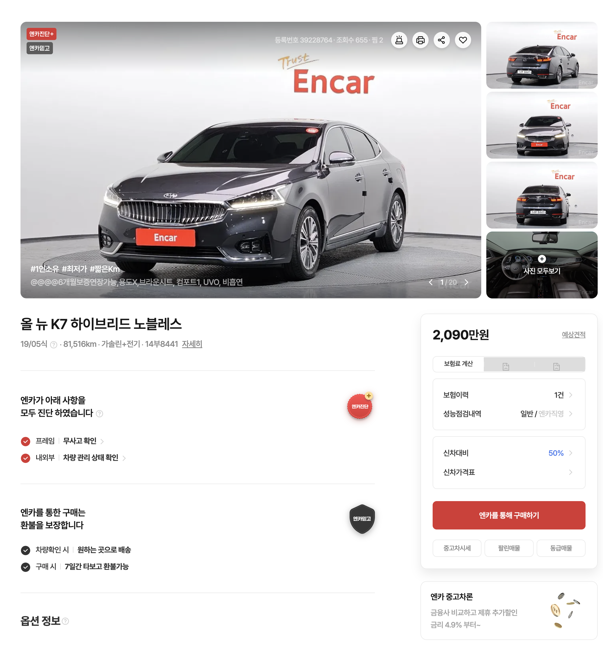 | 등급 및 옵션 | 트림, 썬루프, 내비게이션 등 선택 사양 포함 여부 |